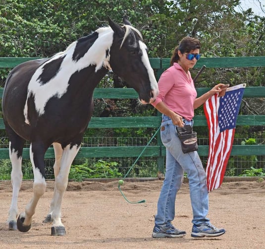 Most expert animal trainers use a diminishing reward system and so do we. This means as a behavior or response becomes reliable we gradually diminish the number of treats we use and transfer to friendly stroking, positive verbal praise or an intermittent treat. In the beginning treats can be dispensed more often as the horse is encouraged and rewarded. We are instilling a new response mechanism in which the treat, given even occasionally is the “light at the end of the tunnel.”