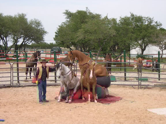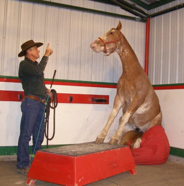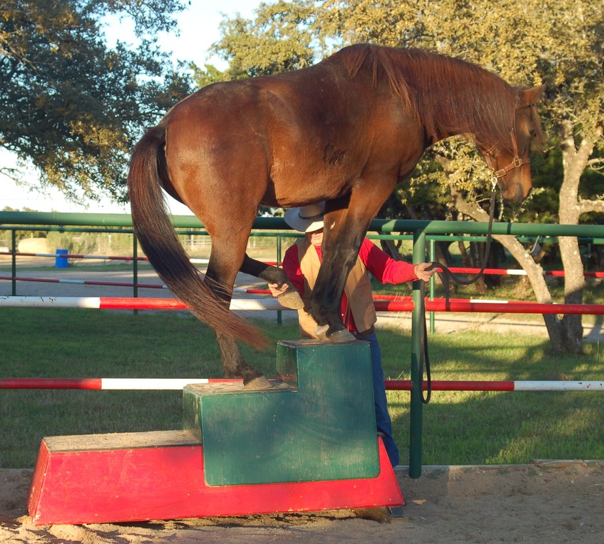 Pedestal Training gives the horse a place to go to, a home base where he is rewarded and can go on to learn many more moves while his feet are anchored. Quiet feet equal a quiet mind.