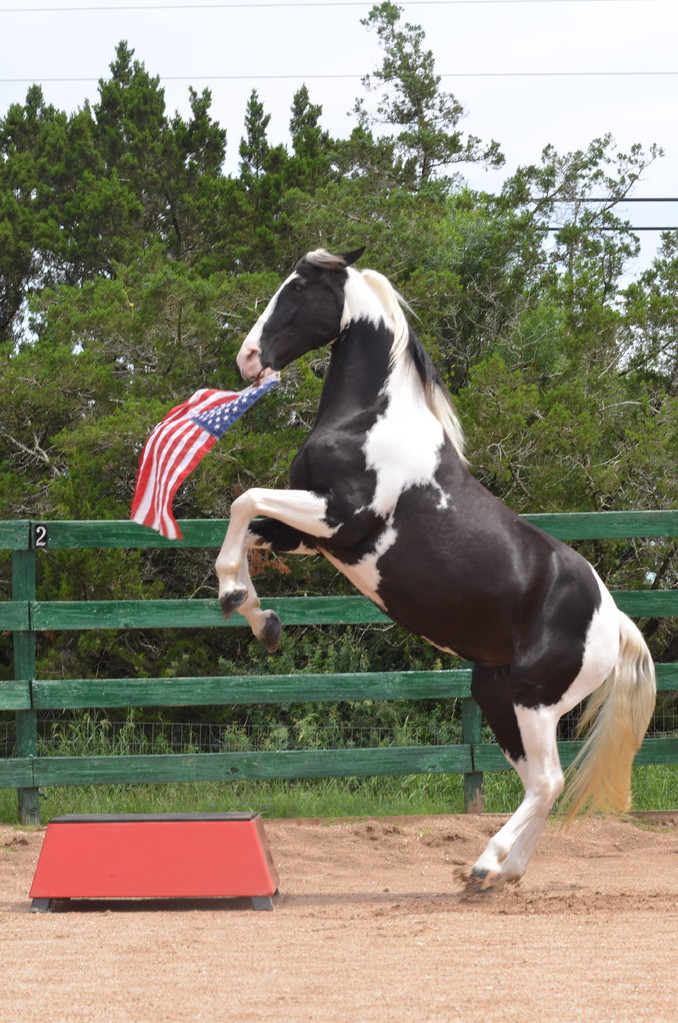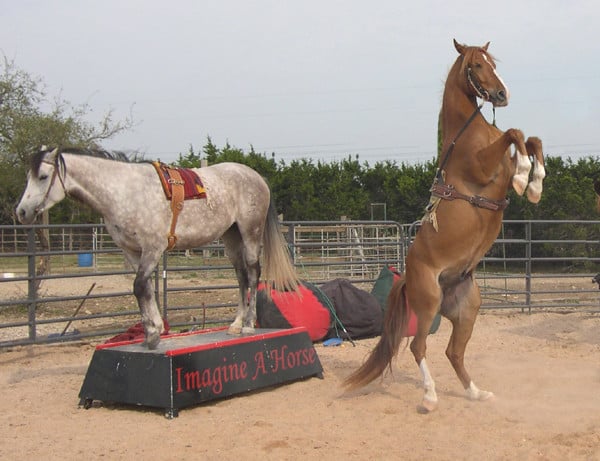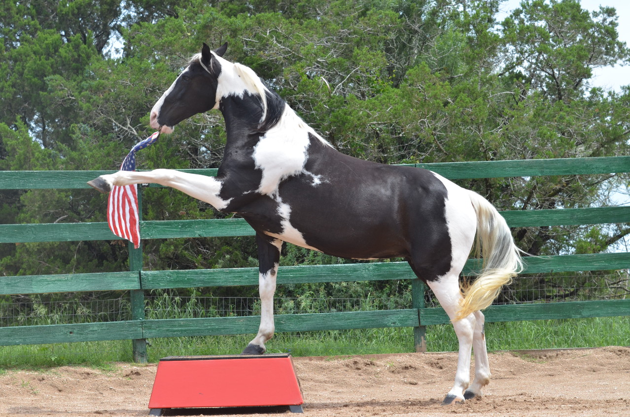 The most compelling aspect of Trick Horse Training, in OUR opinion is it gives the horse an acceptable outlet for self expression and the handler a way to develop the individuality of each horse.