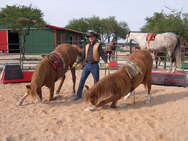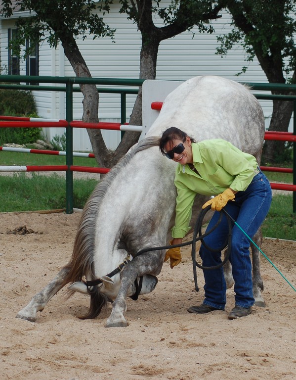 Tricks of Trust- The Obeisance, Bow, Kneel, Lie Down, Sit Up and Sit Down. "Trust" means the horse learns how to "agree to be agreeable" and be confident in his handler.