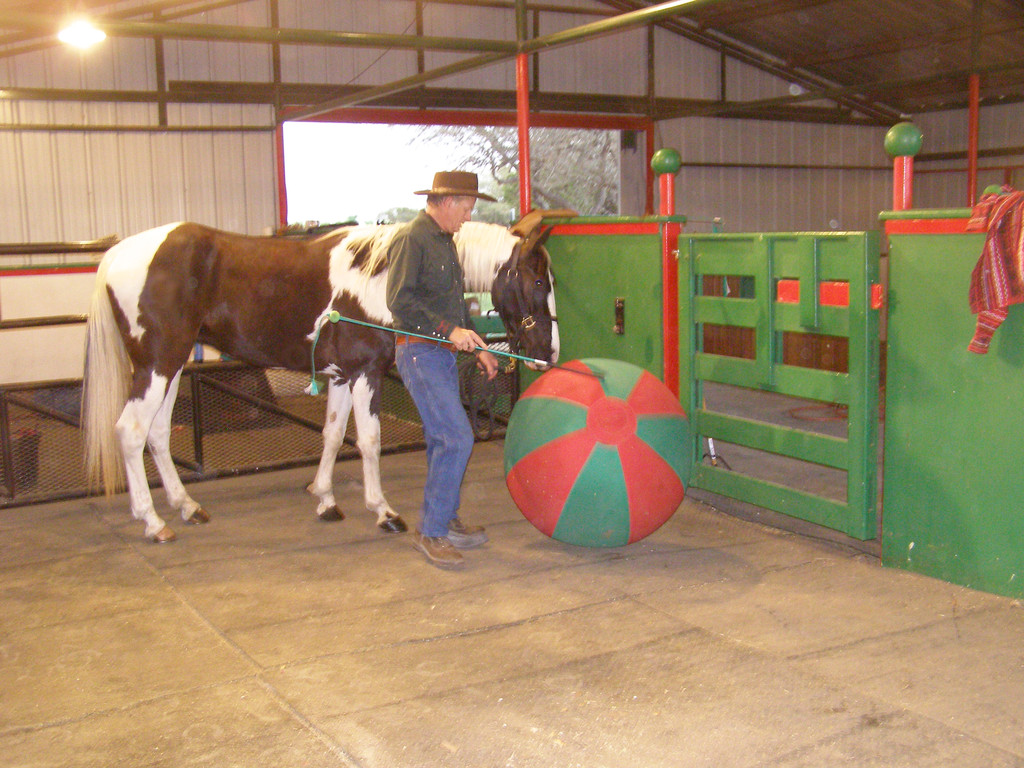 Tricks of Engagement-Retrieve, Objects, herd the Big Ball. The ONLY way a horse can learn these moves is if he wants to ENGAGE with you; it is up to the human to sufficiently motivate the horse to engage.