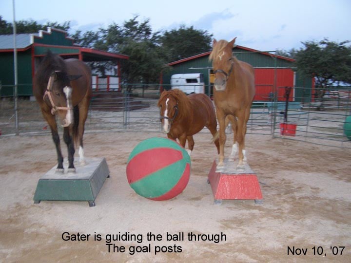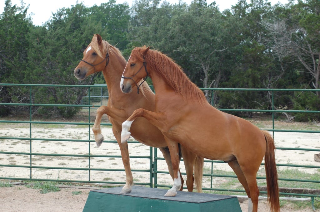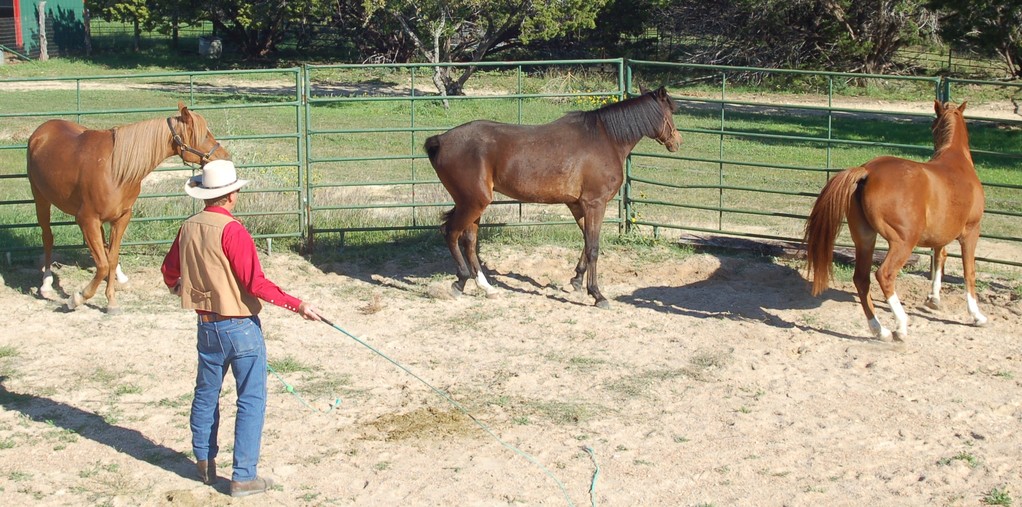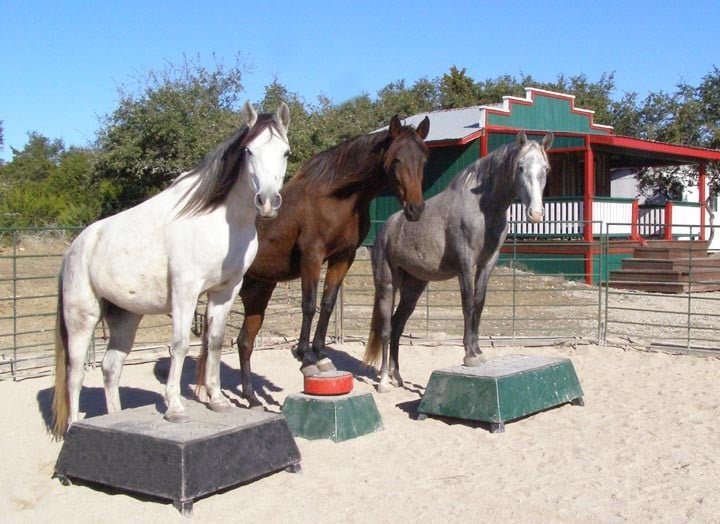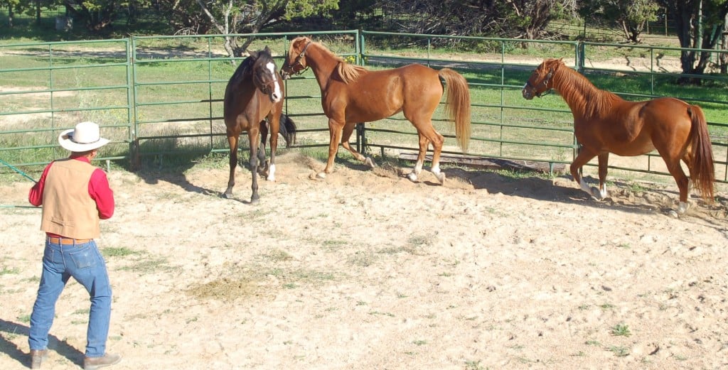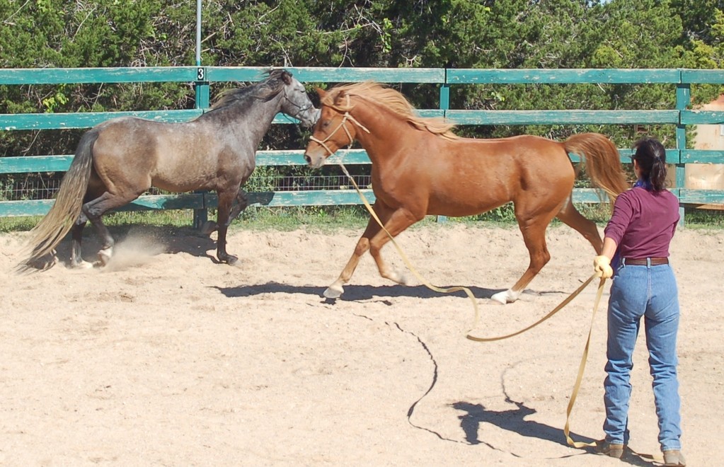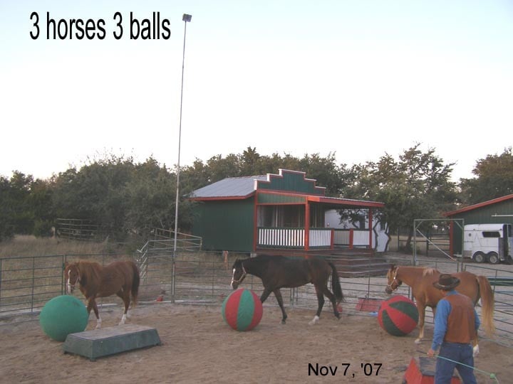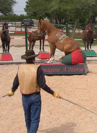 In Performance Liberty Training the horse learns moves and tricks separately then progresses to doing them on cue at liberty or in a Behavior Chain. AS the horse progresses we teach simple patterns, progress to advanced patterns and if desired add another horse or multiple horses.